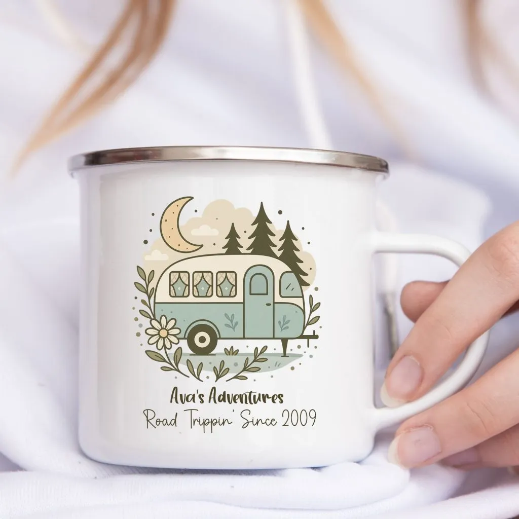 Keep the kids cozy all winter with their very own personalized hot cocoa mug! Crafted from durable metal, these camp mugs are lightweight and shatter-resistant, perfect for little hands. Whether used indoors or out, this versatile and stylish enamel mug works wonderfully for coffee, tea, or even a quick bowl of cereal.