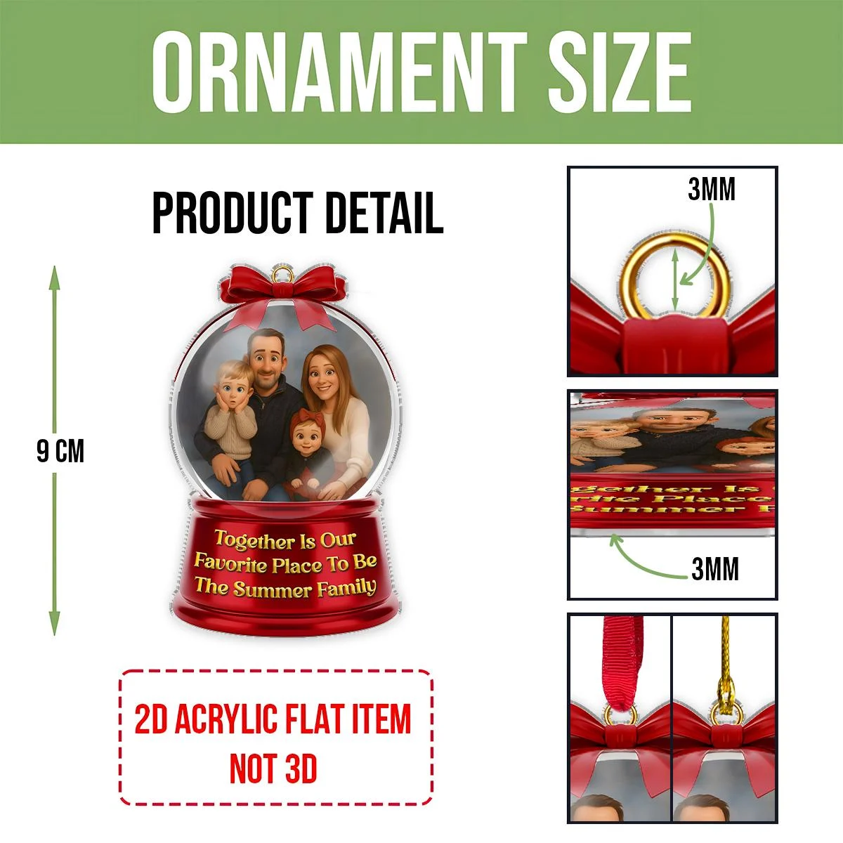 Cherish family memories with our Personalized Family Ornament. This delightful decoration features a custom animated family photo inside a snow globe, with the text “Together Is Our Favorite Place To Be” and custom name making it a perfect holiday keepsake.
