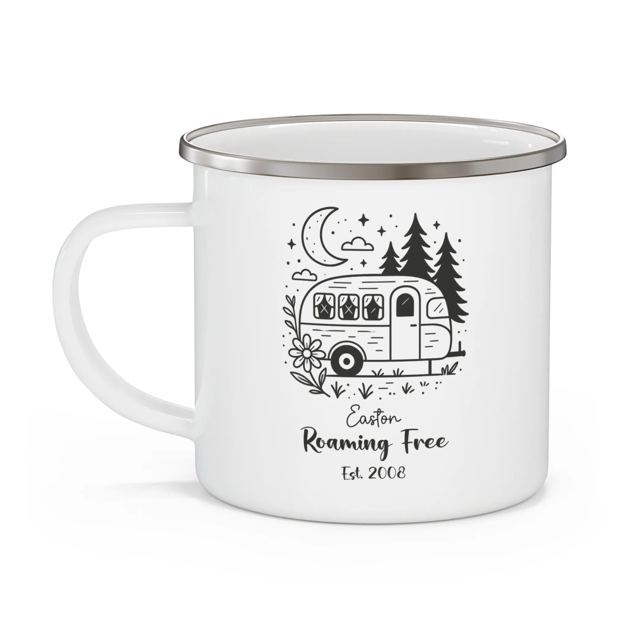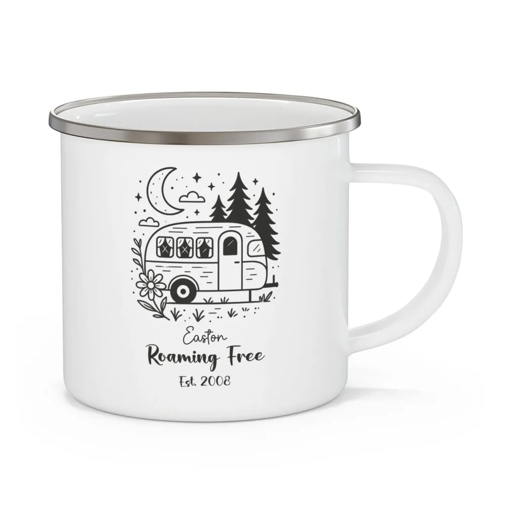 Keep the kids cozy all winter with their very own personalized hot cocoa mug! Crafted from durable metal, these camp mugs are lightweight and shatter-resistant, perfect for little hands. Whether used indoors or out, this versatile and stylish enamel mug works wonderfully for coffee, tea, or even a quick bowl of cereal.