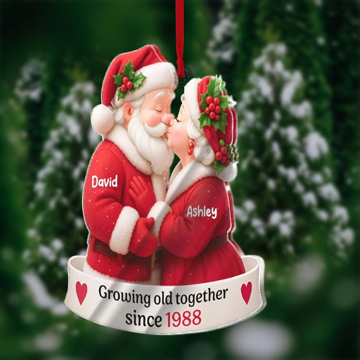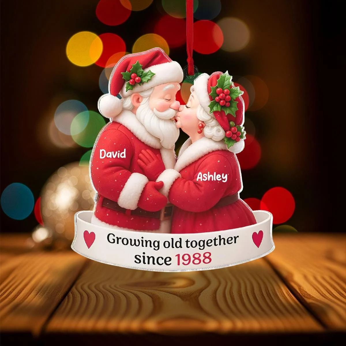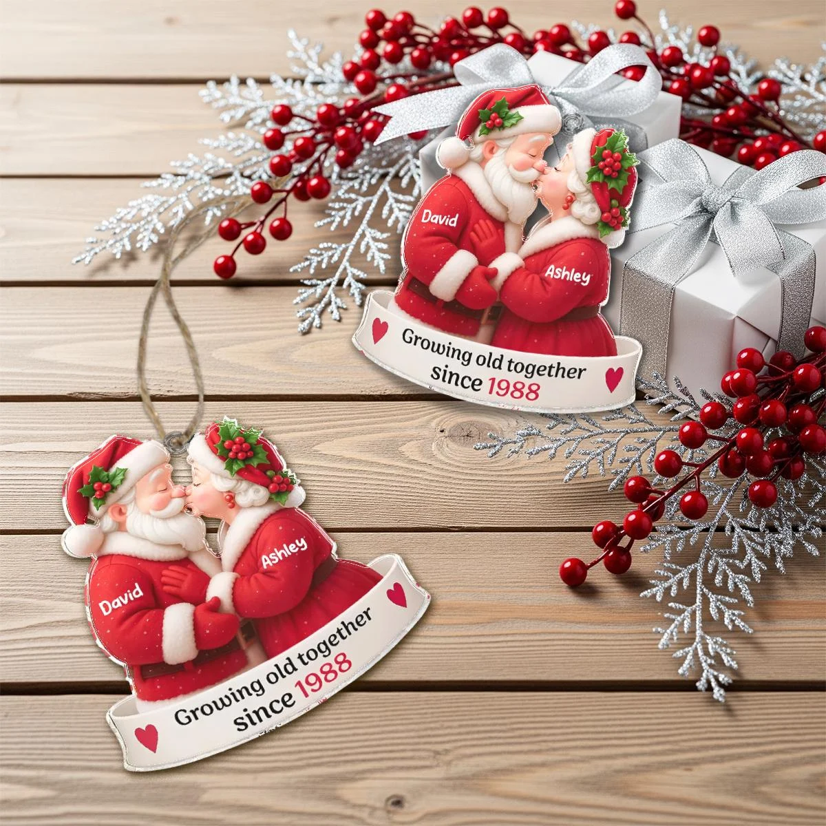 Custom Santa Couple Ornament 2025 – Growing Old Together Acrylic Christmas Decoration – Personalized Holiday Keepsake – Anniversary Gift Idea