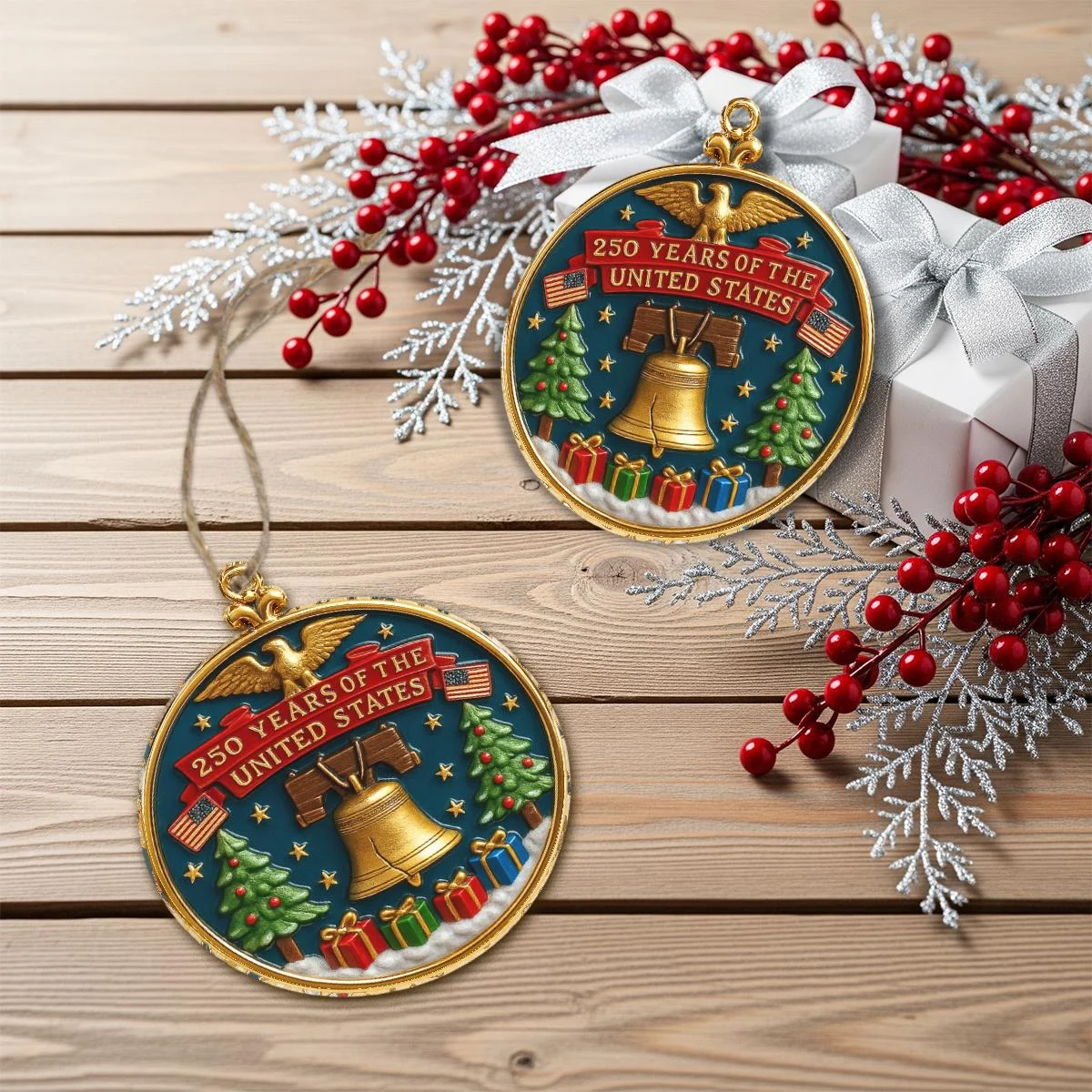 Whether you’re looking to commemorate a special occasion or add something unique to your holiday decorations, our Patriotic 250th Anniversary Bell Ornament is a versatile and heartfelt choice.
