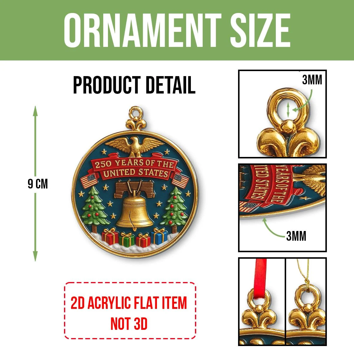 Personalized Semiquincentennial Ornament 1776-2026 – 250 Years of America Acrylic Christmas Tree Decoration – Patriotic Independence Day Gift