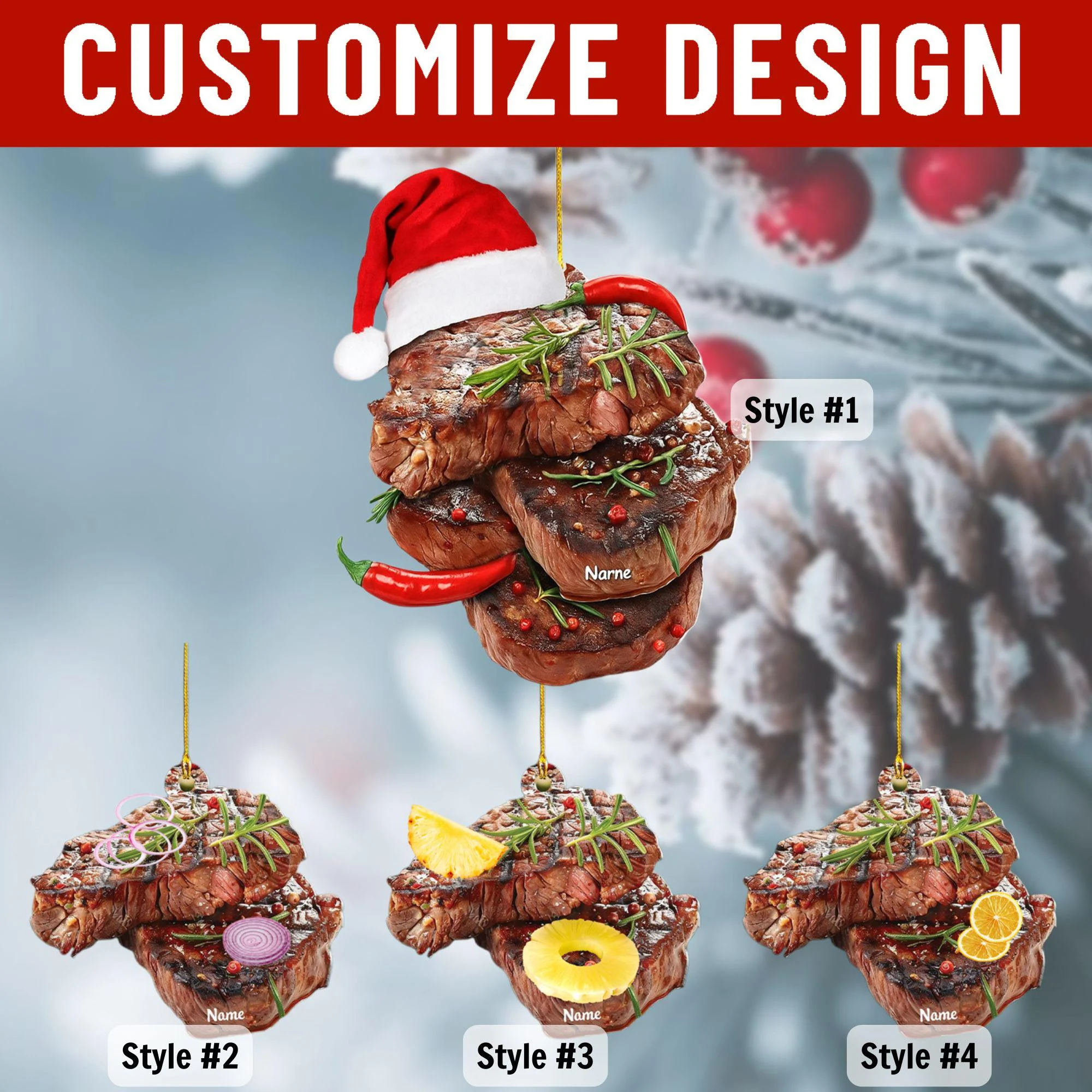 Personalized Steak Christmas Ornament – Custom BBQ Food Decoration – Funny Holiday Tree Keepsake – Unique Xmas Gift Idea for Meat Lovers 2025