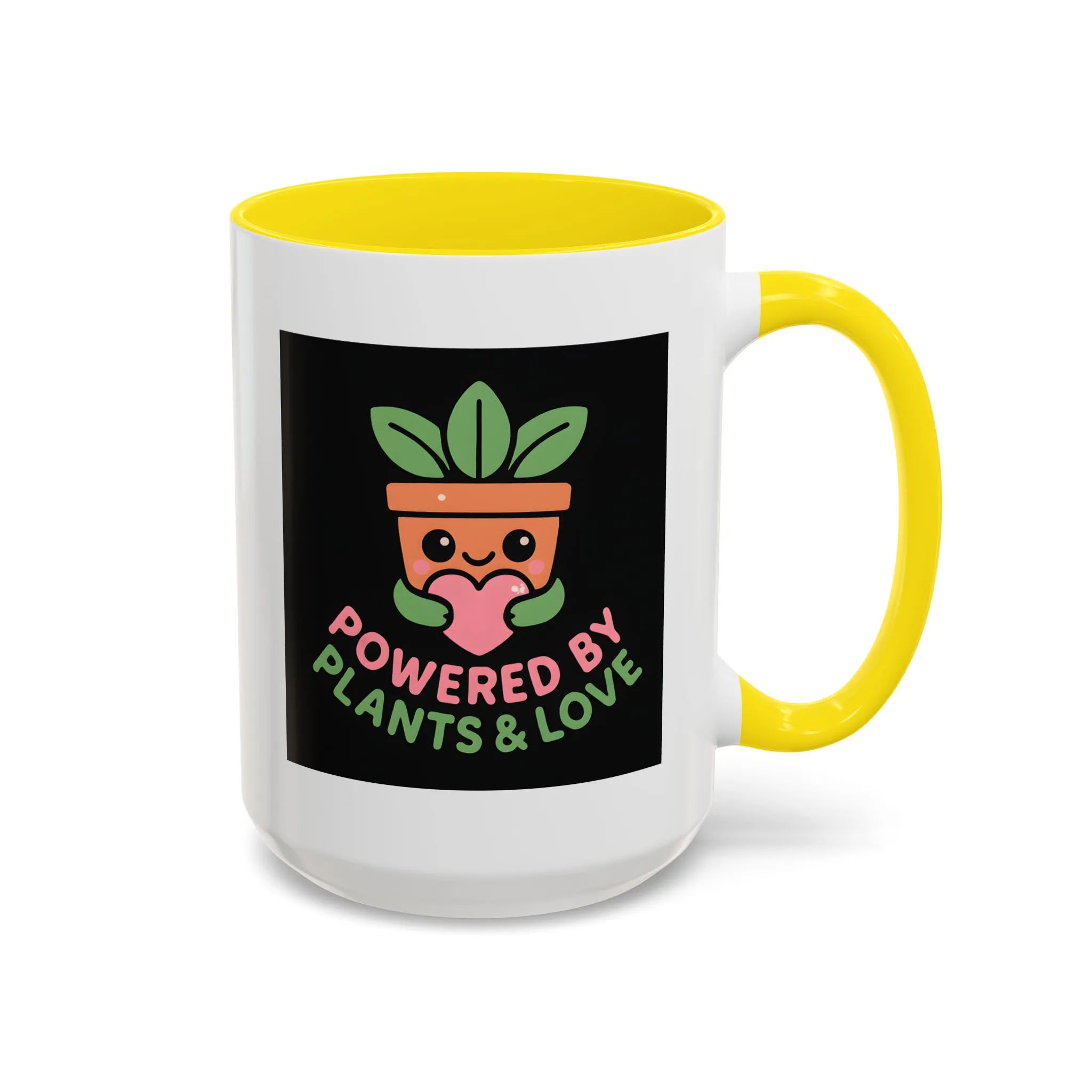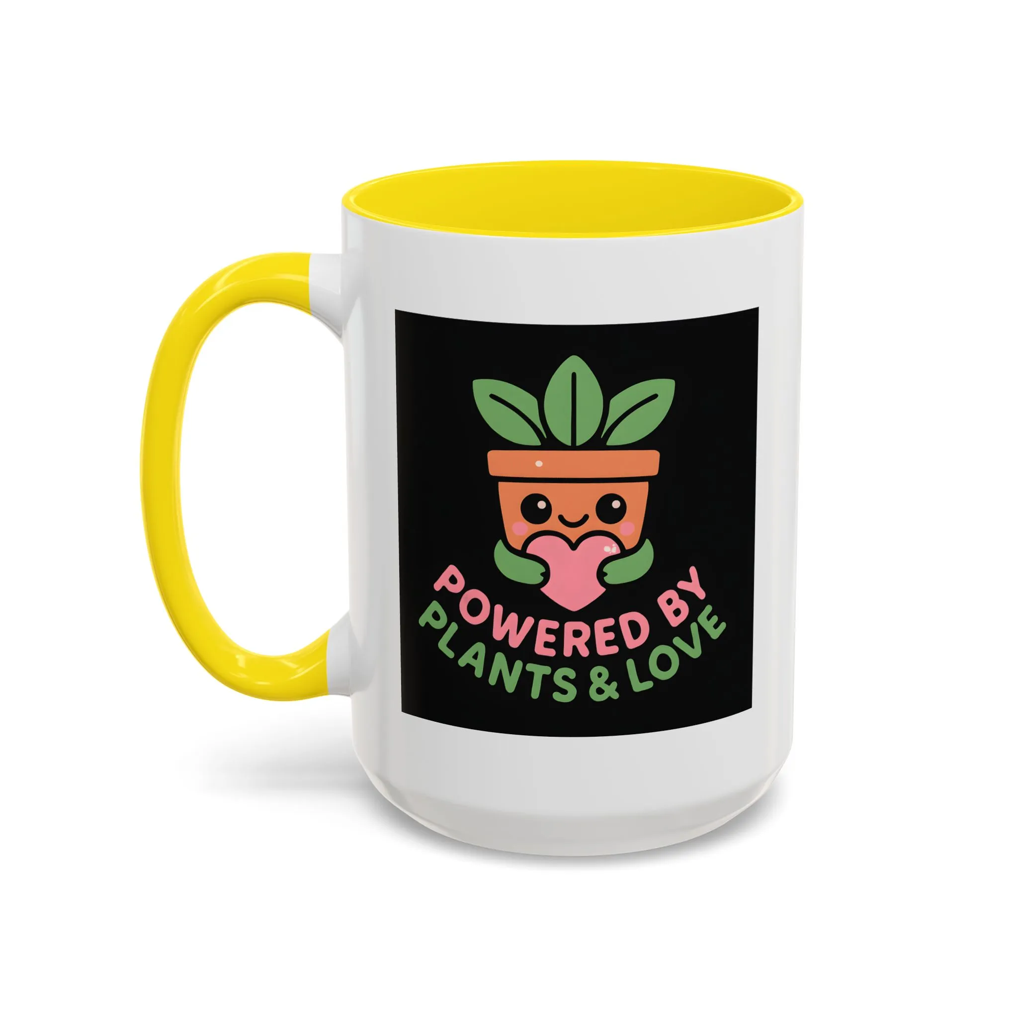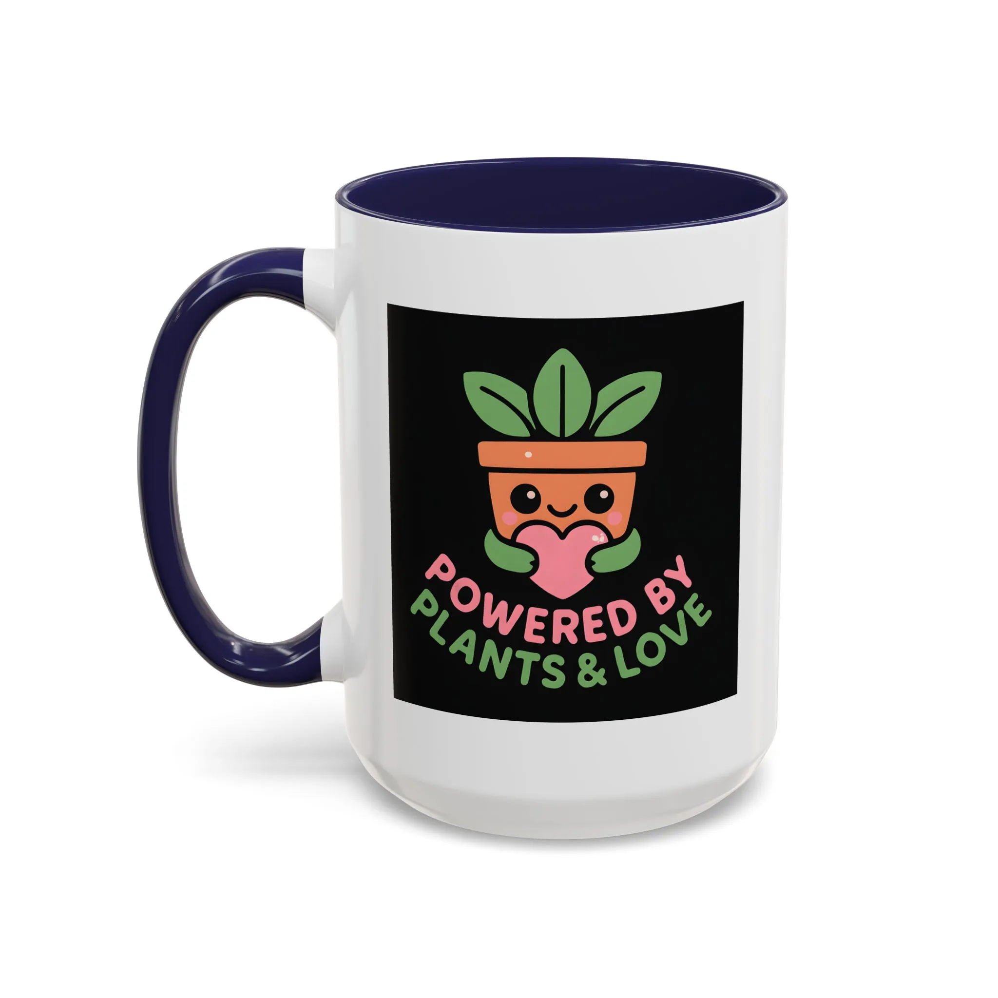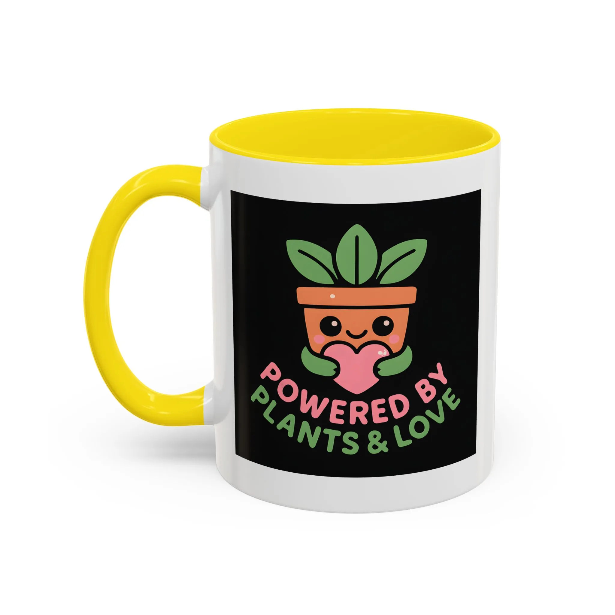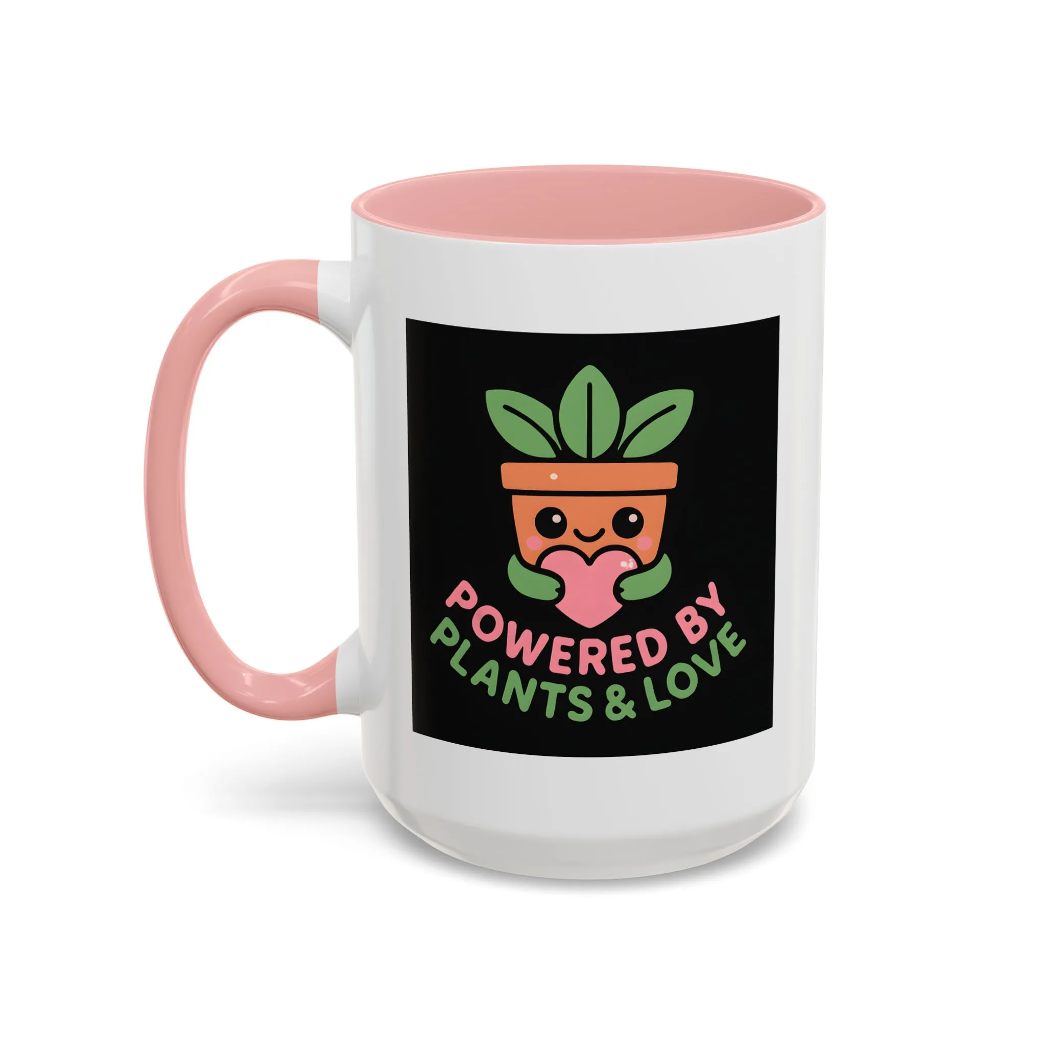 Powered by Plants and Love Mug – Cute Vegan Coffee Cup with Plant Pot Design