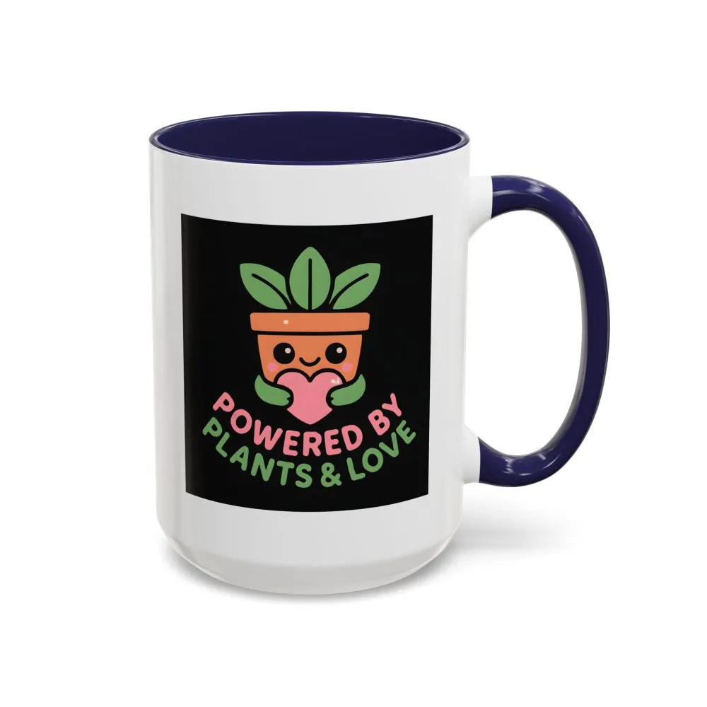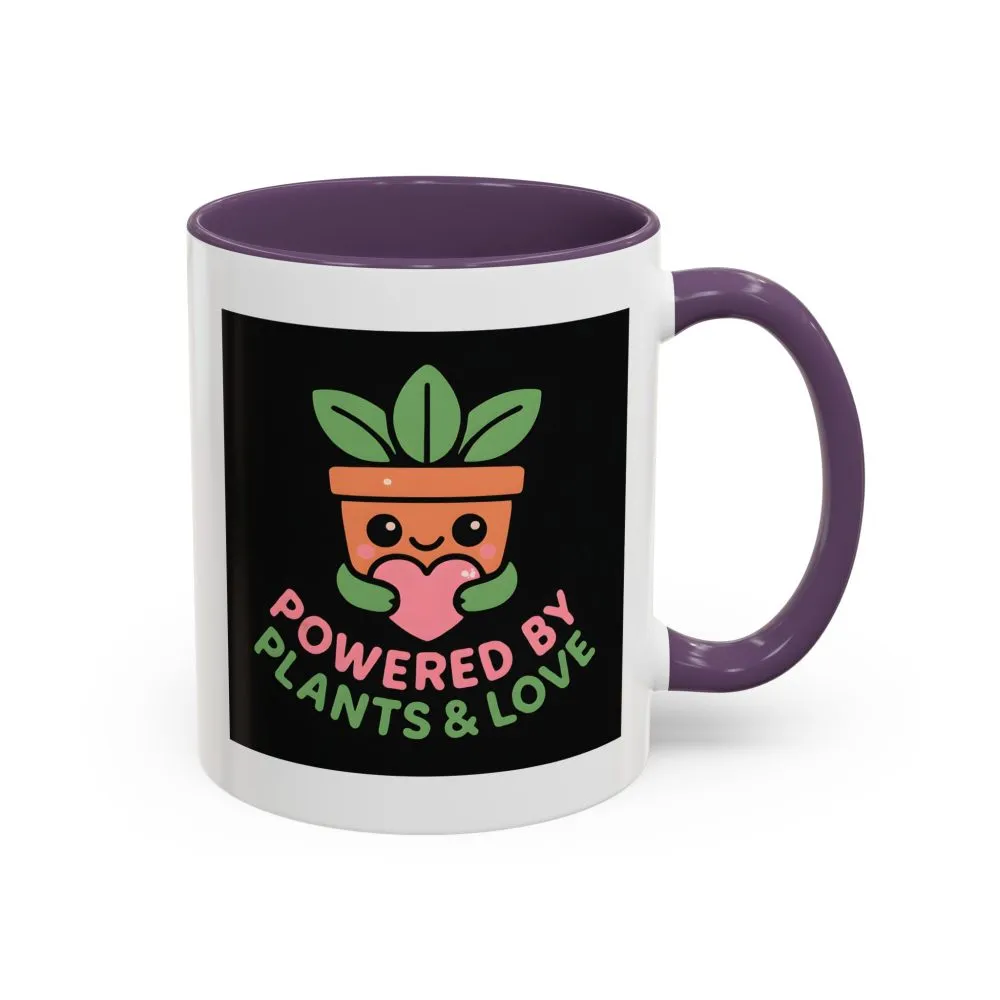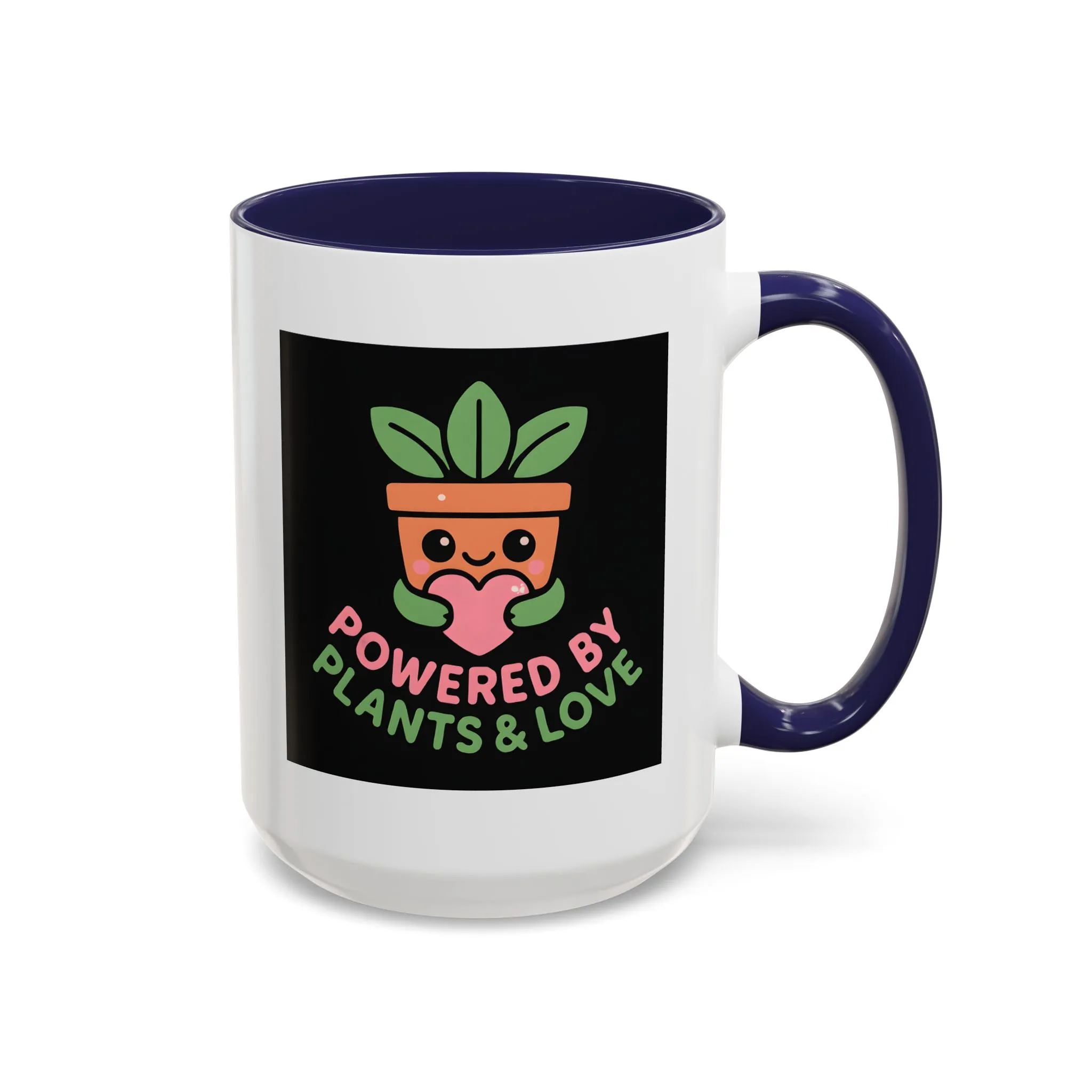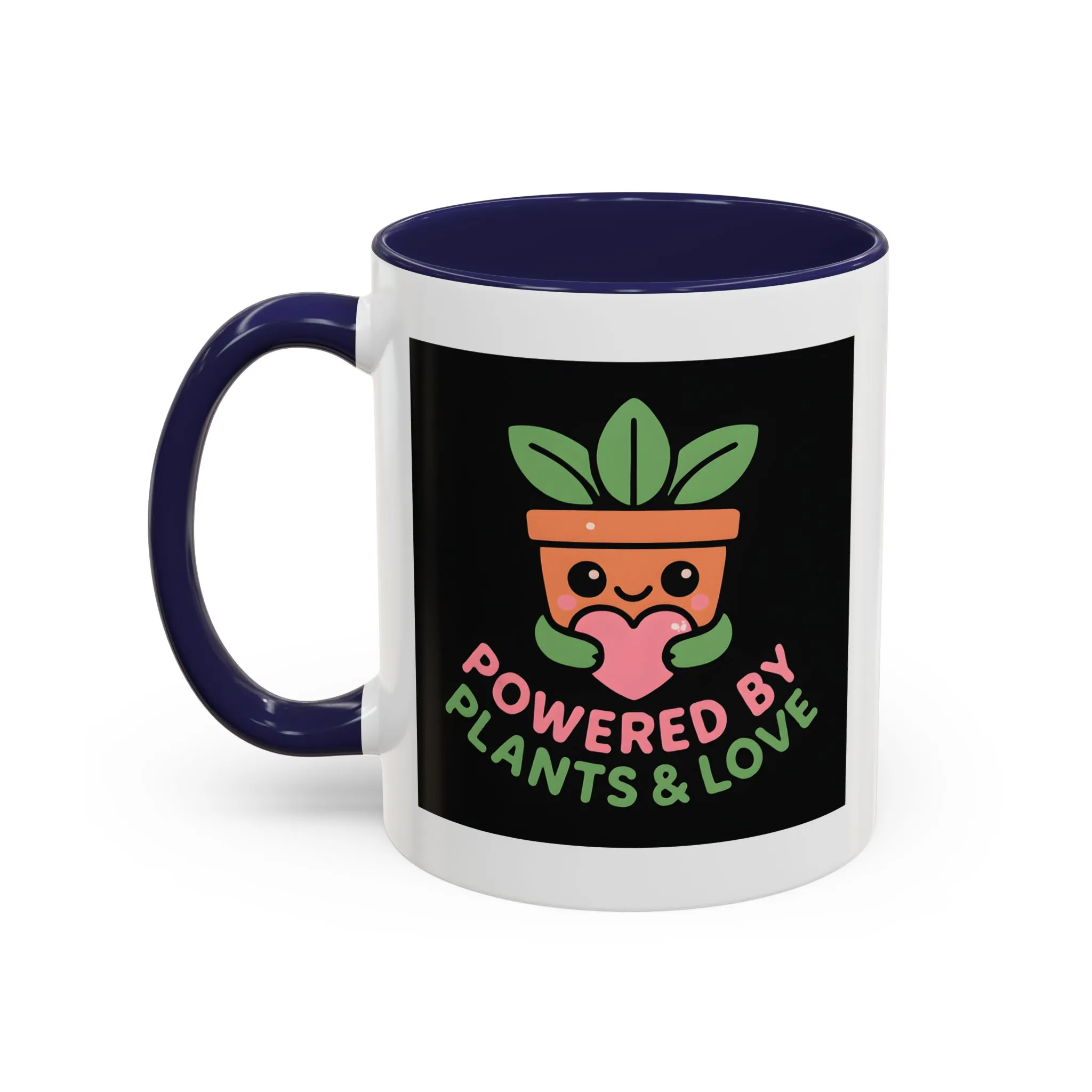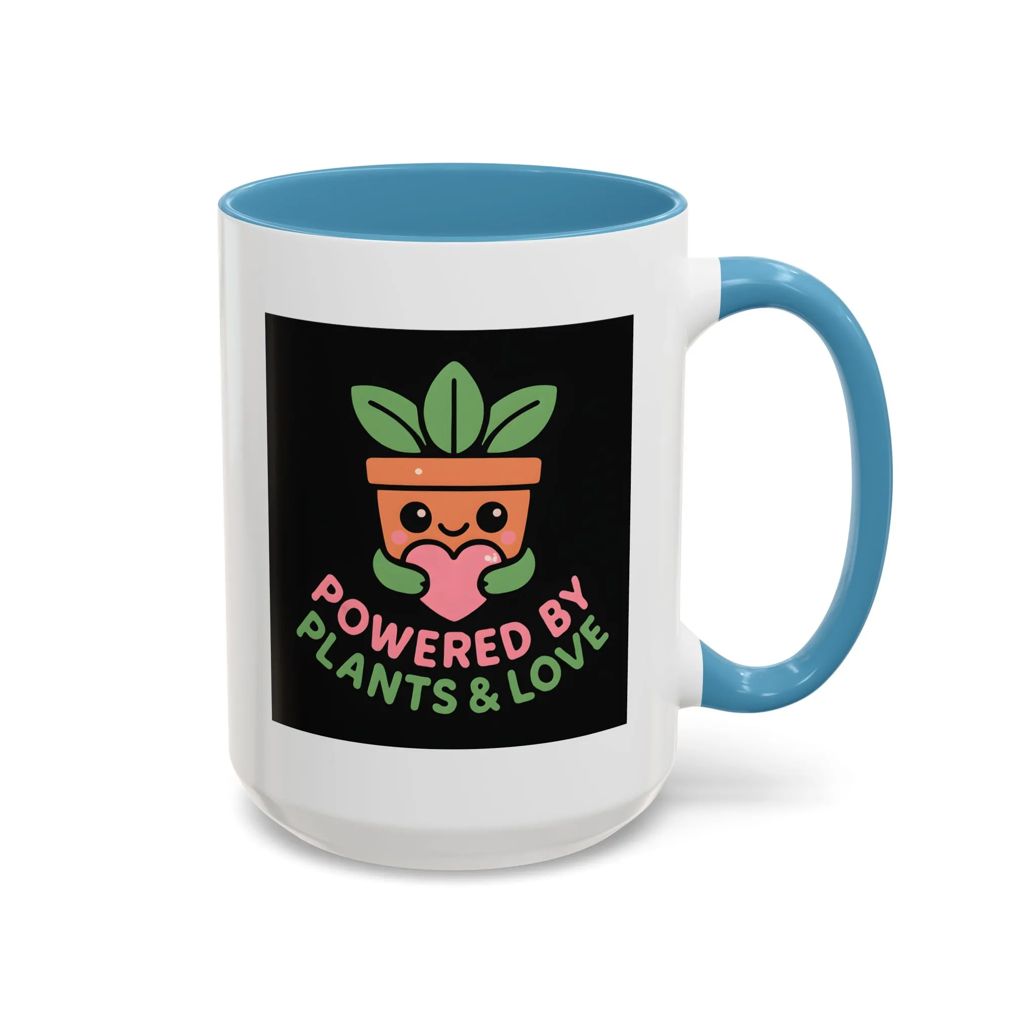 Powered by Plants and Love Mug – Cute Vegan Coffee Cup with Plant Pot Design