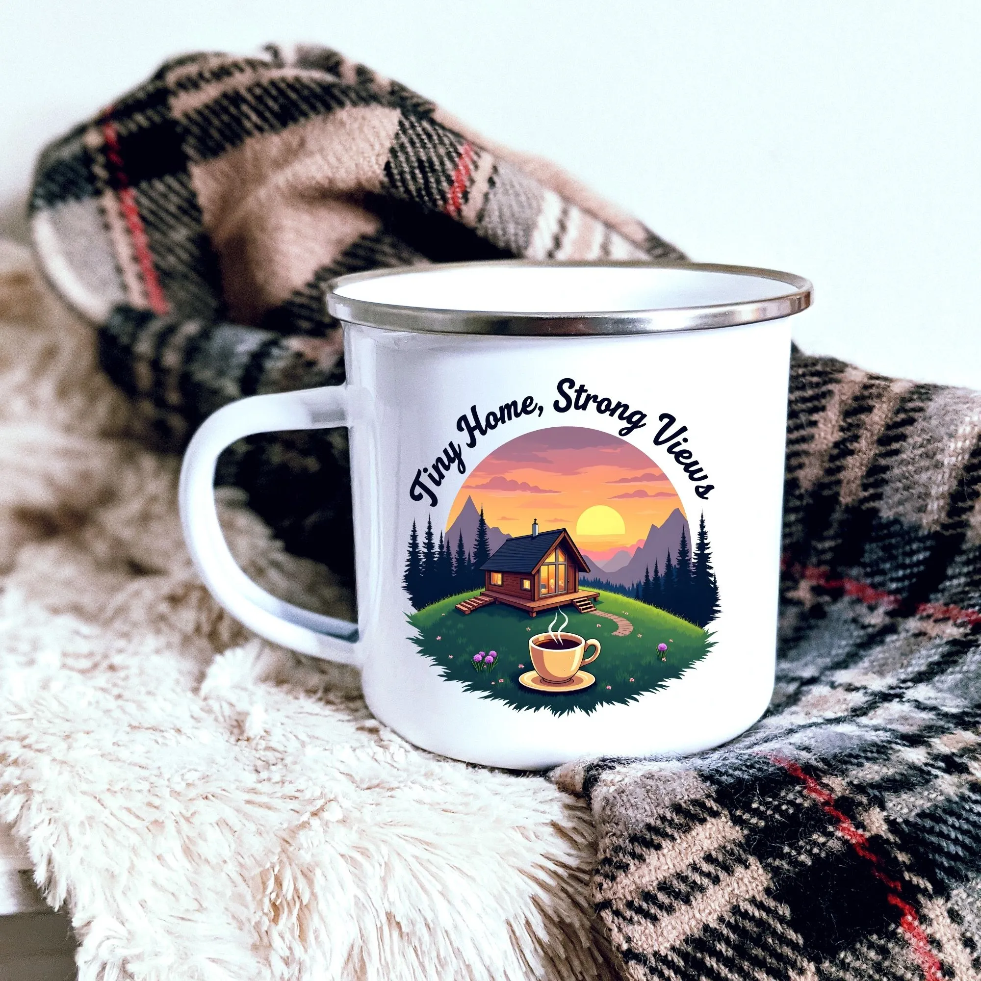 Keep the kids cozy all winter with their very own personalized hot cocoa mug! Crafted from durable metal, these camp mugs are lightweight and shatter-resistant, perfect for little hands. Whether used indoors or out, this versatile and stylish enamel mug works wonderfully for coffee, tea, or even a quick bowl of cereal.